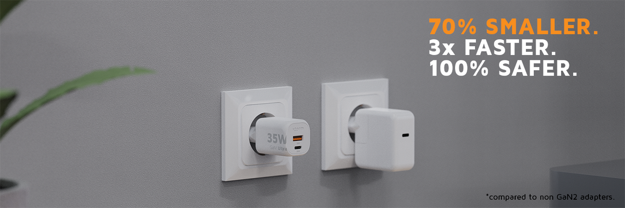 Don't be fooled by its size, this 35W Wall Charger packs a punch when it comes to power. GaN² Ultra – the next generation of GaN technology – allows our charger to safely and efficiently handle more power in an even smaller size.