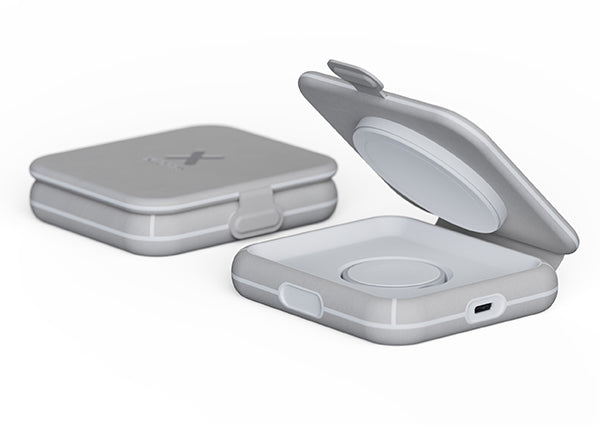 When not in use, you easily fold up the Travel Charger. Folded, it turns into a compact and handy package. The magnetic closure ensures protection of the charging surfaces and keeps them safe.