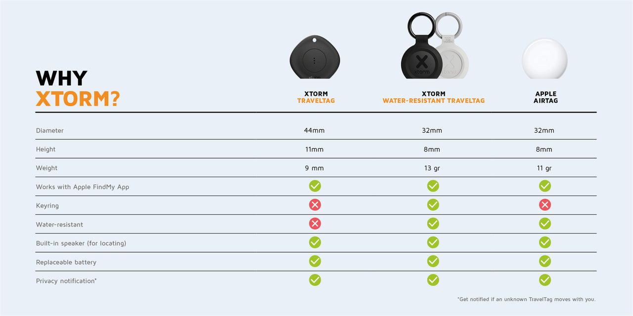 Travelers can protect their luggage from loss or theft with the help of luggage trackers and suitcase trackers. Thanks to the Bluetooth connection, you can easily monitor the TravelTag, and thus your luggage, in the Find My app. With a luggage tracker, travelers can rest assured knowing that their belongings are safe while enjoying stress-free travel. Whether it's business trips or vacations, the Xtorm TravelTag is a valuable companion for every traveler.