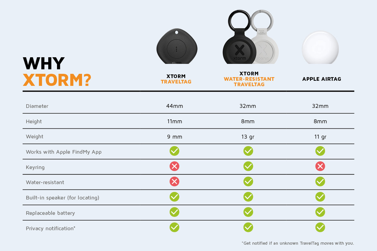 Do you always want to know where your valuable belongings are? GPS trackers provide the solution for this. The Xtorm TravelTag is essentially a simplified version of a GPS Tracker. Instead of GPS technology, the Tag utilizes the Apple Find My network via Bluetooth, making its usage remarkably straightforward.