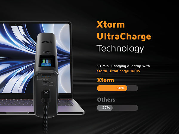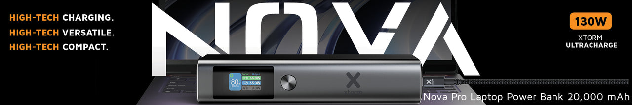 This powerful 20K mAh Nova Pro Power Bank with 100W Xtorm Ultra FastCharge, has everything you need to re-energise your laptop and other devices, superfast! The aluminium housing, latest technologies and the Advanced Intelligent Display make this a high-quality and high-tech Power Bank.