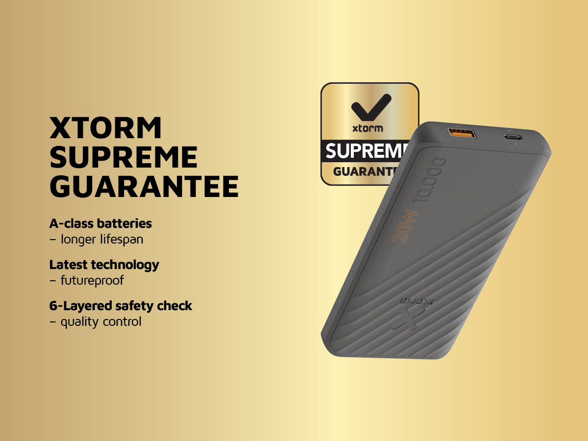 The built-in mechanisms make this Fan Edition Power Bank safe to use, for years to come. Both the Power Bank itself and the connected devices are protected against short circuits, overheating and overcharging. The Xtorm 6-layer safety check ensures this is your go-to Power Bank for all your daily charges! With extensive quality control, you are assured of a safe and high-quality Power Bank that you can use daily.
