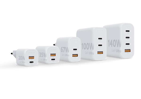 With its compact design and quad-port functionality, our 140W GaN² Ultra wall charger is perfect for your travels, office, or home. The inclusion of USB-C and USB-A ports ensures compatibility with a wide range of devices. When powering multiple devices simultaneously, the maximum output is distributed across the ports.